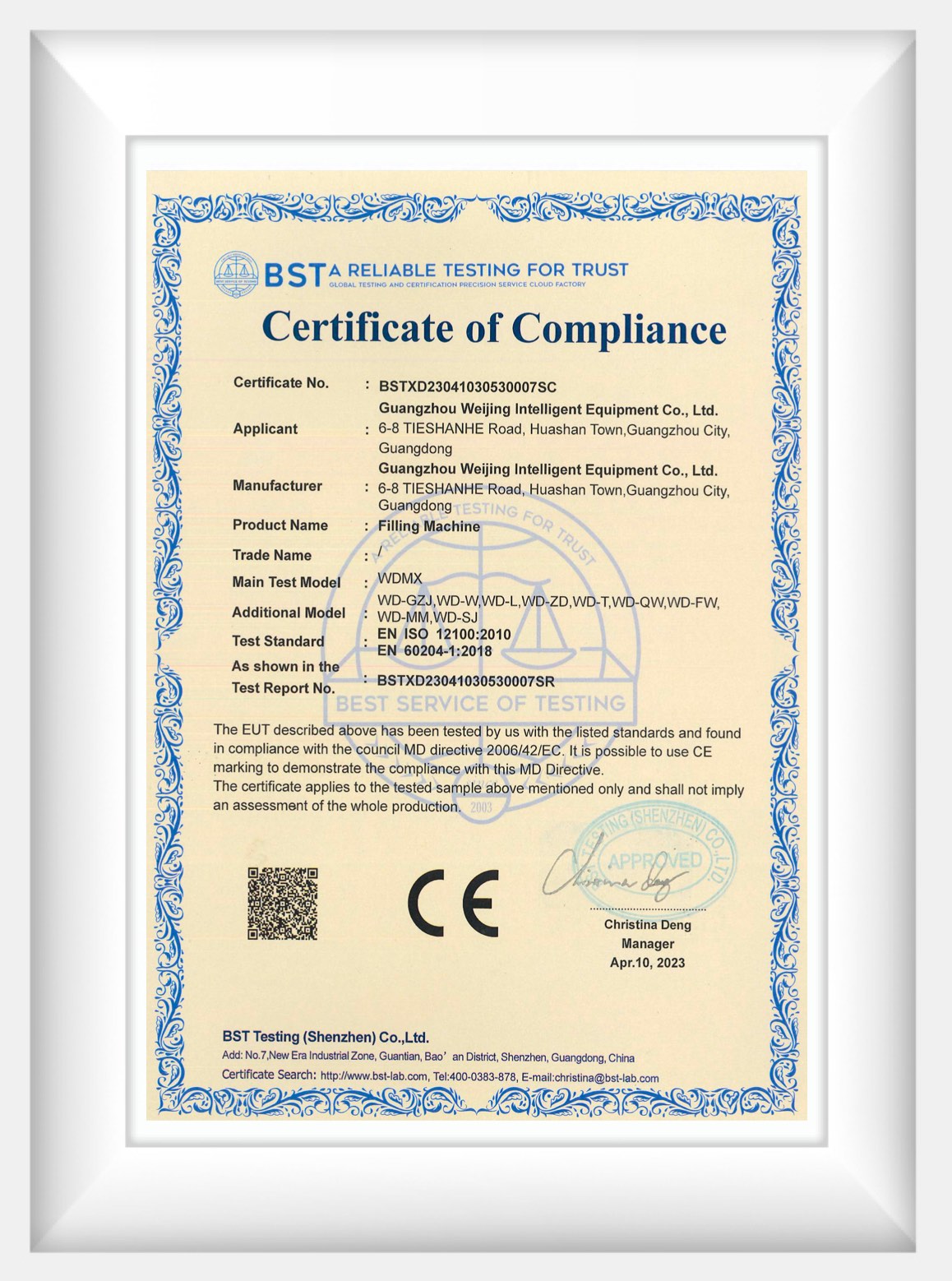 Quality is at the core of everything we do at Wejing Intelligent Equipment. We are proud to announce that our company has successfully obtained ISO9001 and CE certification for our rigorous quality management system. This certification demonstrates our commitment to delivering high-quality and reliable machinery to our valued customers. From raw material selection to final product inspection, every aspect of our manufacturing process adheres to strict quality control measures. With ISO9001 and CE certification, we ensure that our products meet international standards and exceed customer expectations.